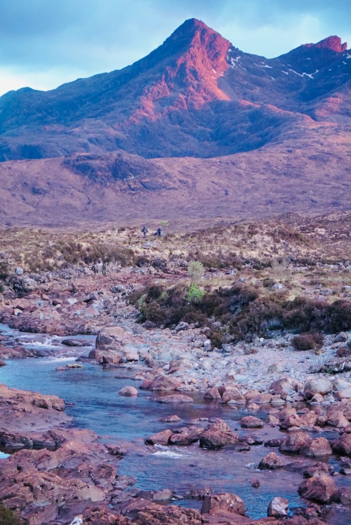 Our second day took us 13 miles to Kings House, along the iconic Scottish moors. We spotted a herd of Red Deer in the hills which was a welcome sight after feeling completely alone for so long. That night we stayed at Kings House Hotel which dates from 1750 in the aftermath of the Jacobite Uprising. Surrounded by mountains, the valley is famous for scenes from the James Bond movie SkyFall. We had an unforgettable dinner watching the deer and baby ducks foraging near the stream as the sun went down on Glen Coe.